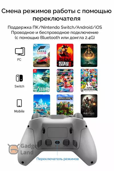 - менять режимы подключения геймпада теперь очень просто - с помощью переключателя на задней стороне;